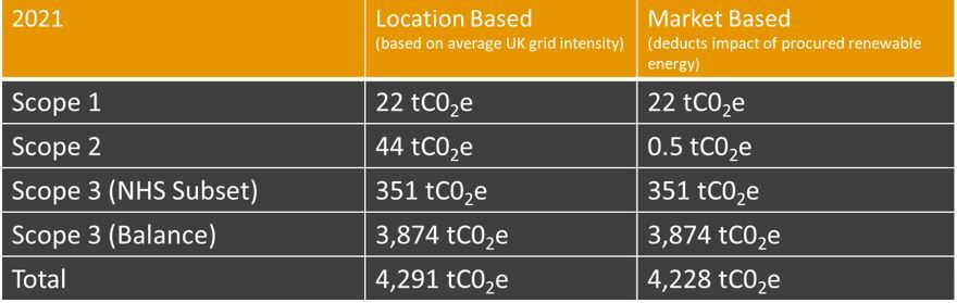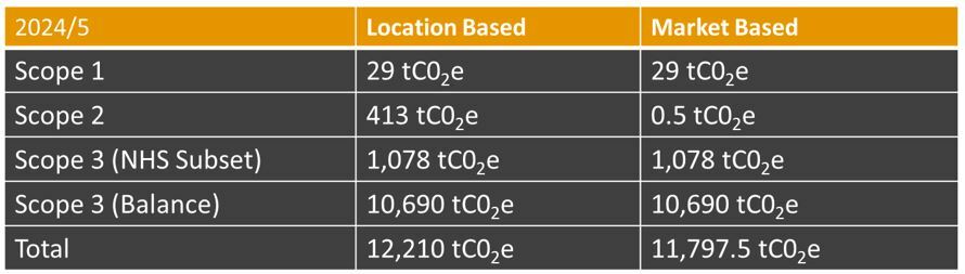 We first measured our carbon emissions in 2021. To enable like-for-like comparison for 2024/25, following a change in provider and methodology, the 2021 baseline emissions have been re-calculated and are in the table below: